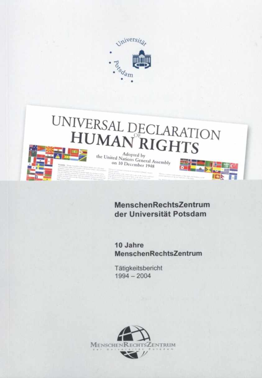 This report covers the activities of the Human Rights Centre of the University of Potsdam (MRZ) of the last ten years. MRZ was established in 1994, being one of the interdisciplinary centres of the University. By 22 November 2001 the Centre merged with the Centre for Studies on Justice and became a so-called central scientific unit of the University of Potsdam. It is now directed by two directors, one being a professor of law, the other a professor of philosphy. Multidisciplinary colloquies are resulting from this co-operation. MRZ“s activities in the field of human rights focus on the conduct and publication of research, the setting up of its library and documentation system, and informing about human rights. In co-operation with the Faculties of Law and Philosophy, the directors and their assistants are engaged in teaching human rights. Am important element of MRZ“s research activities in previous years was the organization of colloquies. Experts in the field of human rights were brought together in order to discuss current issues. (selection page 71 ff)