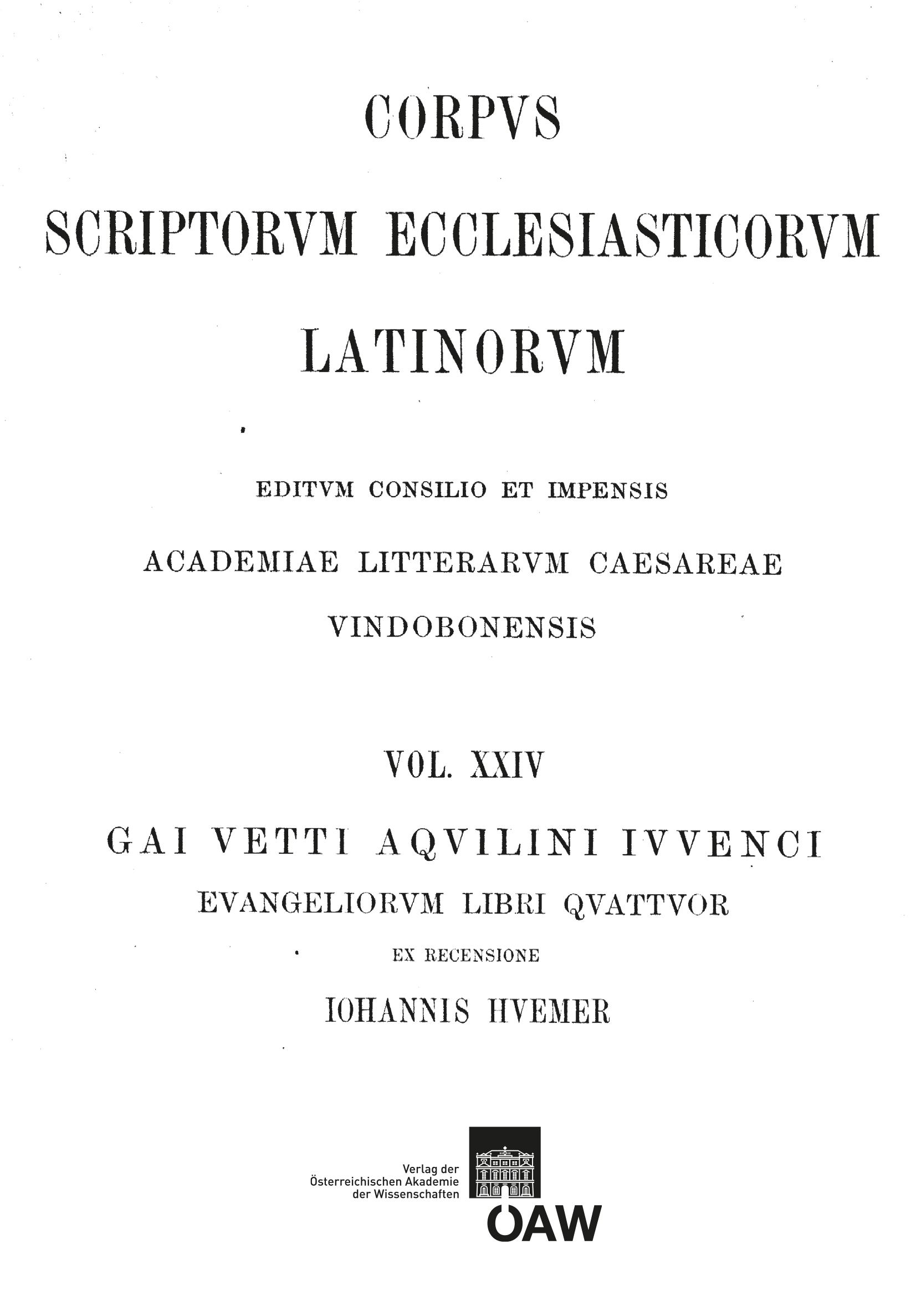 [0] => CSEL 24 – REPRINT Iuvencus Evangeliorum libri