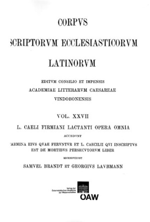 [0] => CSEL 27/1 – REPRINT Lactantius – De opficio dei, De ira dei, Carmina, Fragmenta