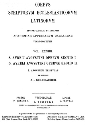 [0] => CSEL 34/1 – S. Aureli Augustini Operum – Section I/II S. Augustini Epistulae – ed. A. Goldbacher/REPRINT