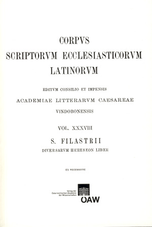 [0] => CSEL 38 – REPRINT. Filastrus. Diversarum hereseon liber