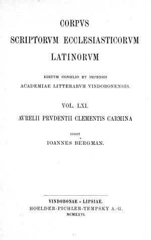 [0] => CSEL 61 – Aurelii Prudenti Clementis Carmina – ed. Johannes Bergma/REPRINT