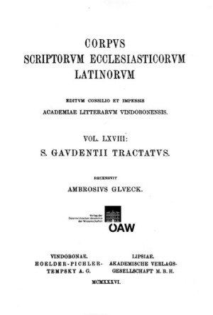 [0] => CSEL 68 – REPRINT. Gaudentius. Brixiensis – Tractatus