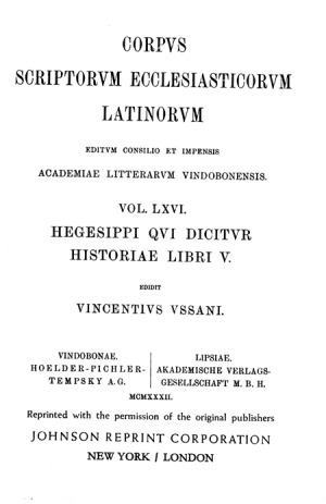 [0] => CSEL LXVI/1: HEGESIPPI QUI DICITUR HISTORIAE LIBRI V