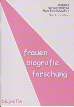The present volume documents the results of an eponymous conference held in November 2000 initiated by biografiA, the Biographic Database and Lexicon of Austrian Women (http://www.biografiA.at) and held by the Institute of Science and Art (http://honehobel.phl.univie.ac.at/~iwk). Against the background of the Biographical Database of Austrian Women in preparation and the proposed Lexicon of Austrian Women, speakers from Germany and Austria presented both theoretical considerations and existing projects from the field of biographic women’s research.