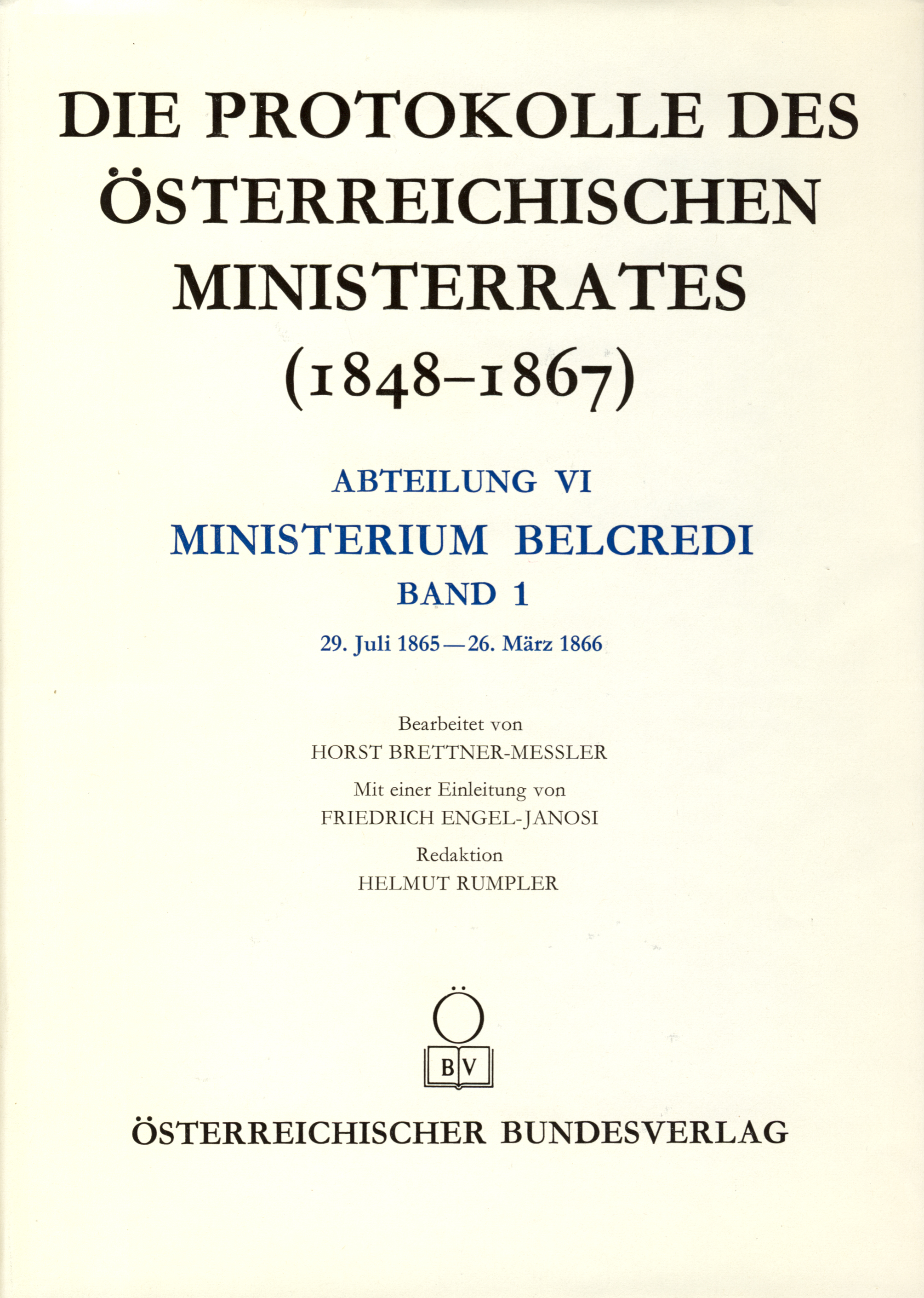 Reihe: Protokolle des Österreichischen MinisterratesIn Österreich führte das Aufbegehren der Märzrevolution des Jahres 1848 als erste Errungenschaft zur Einsetzung verantwortlicher Minister und eines verantwortlichen Ministerrates. Die Geschichte dieser Institution spiegelt die konstitutionelle Entwicklung der Monarchie wieder. Die Protokolle präsentieren alle Facetten staatlichen Lebens, von Fragen der Struktur und der Organisation des Staates bis zu gesellschaftlichen, wirtschaftlichen und technischen Entwicklungen sowie kulturellen und sozialen Problemen. Sie sind eine herausragende historische Quelle.