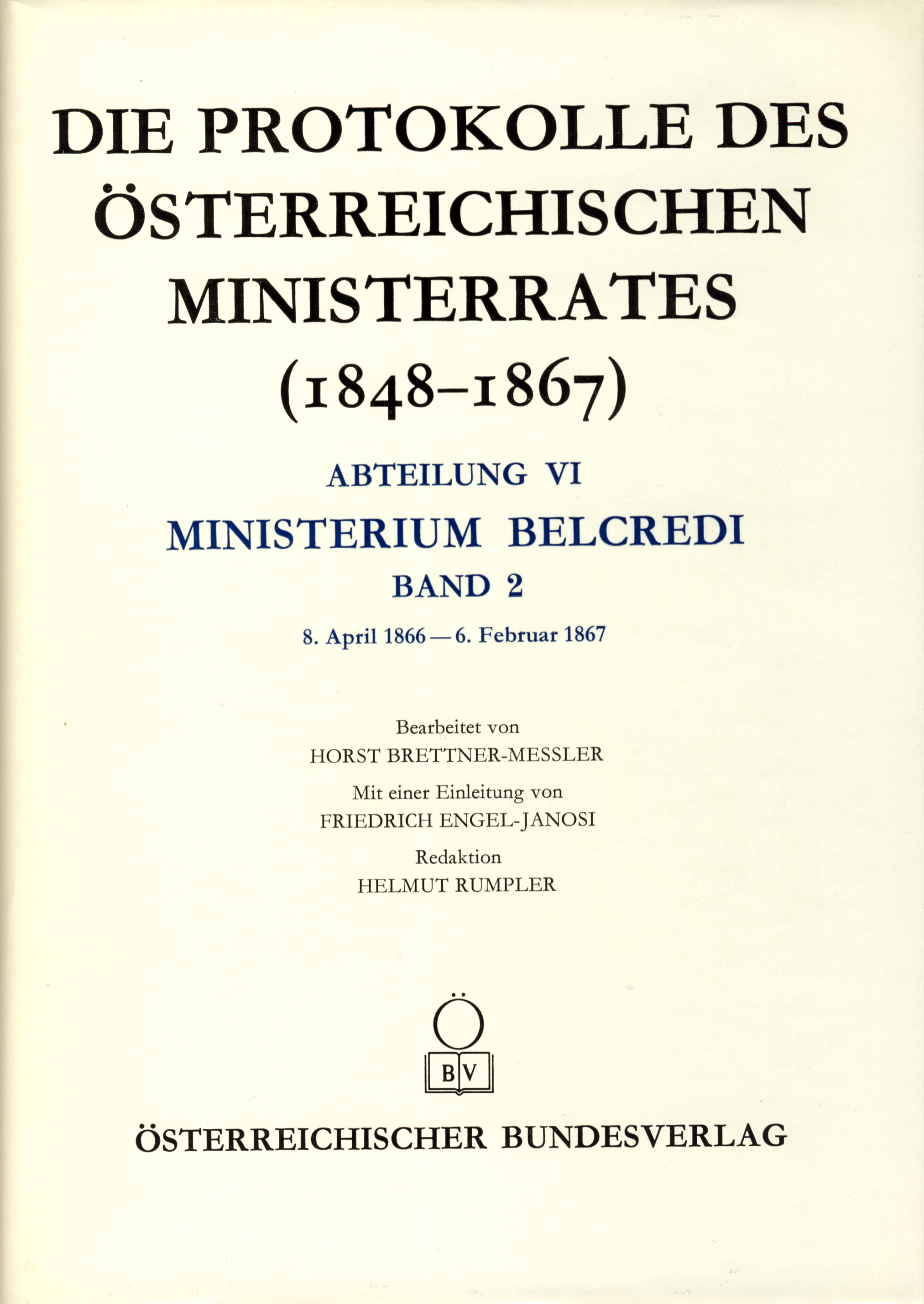 Reihe: Protokolle des Österreichischen MinisterratesIn Österreich führte das Aufbegehren der Märzrevolution des Jahres 1848 als erste Errungenschaft zur Einsetzung verantwortlicher Minister und eines verantwortlichen Ministerrates. Die Geschichte dieser Institution spiegelt die konstitutionelle Entwicklung der Monarchie wieder. Die Protokolle präsentieren alle Facetten staatlichen Lebens, von Fragen der Struktur und der Organisation des Staates bis zu gesellschaftlichen, wirtschaftlichen und technischen Entwicklungen sowie kulturellen und sozialen Problemen. Sie sind eine herausragende historische Quelle.
