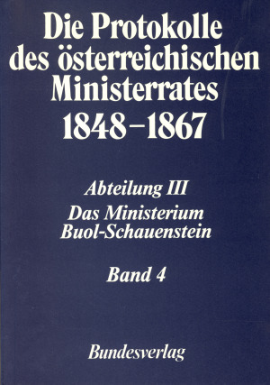 [0] => Die Protokolle des österreichischen Ministerrates 1848-1867 Abteilung III: Das Ministerium Buol-Schauenstein Band 4