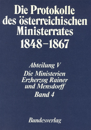 [0] => Die Protokolle des österreichischen Ministerrates 1848-1867 Abteilung V: Die Ministerien Erzherzog Rainer und Mensdorff Band 4