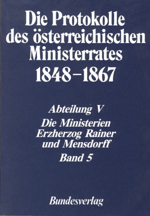 [0] => Die Protokolle des österreichischen Ministerrates 1848-1867 Abteilung V: Die Ministerien Erzherzog Rainer und Mensdorff Band 5