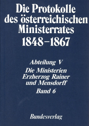 [0] => Die Protokolle des österreichischen Ministerrates 1848-1867 Abteilung V: Die Ministerien Erzherzog Rainer und Mensdorff Band 6
