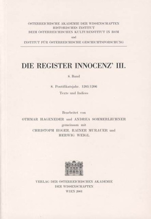 Der achte Band der Edition der Register Papst Innocenz´III. (1198–1216), der als sechster Band der Gesamtedition erscheint, enthält 218 Schreiben der Jahre 1205 und 1206, deren Großteil seitens des Papstes ausgefertigt wurde. Acht davon sind Einlaufstücke, von denen drei eine Sonderstellung einnehmen: die Eide der Konsuln von Alessandria und des Markgrafen Wilhelm Pallavicino und eine Schenkung des letzteren an die römische Kurie. Die Papstbriefe betreffen theologisch-liturgische Fragen und Rechtsinterpretationen, den Vierten Kreuzzug und das Verhältnis zur griechischen Kirche, die politischen Verhältnisse am Balkan und in Ungarn, die Konflikte zwischen Frankreich und England, im deutschen Reich und Dänemark, Ehesachen und besitzrechtliche Fragen, die Häretikerbekämpfung, Maßnahmen im Patrimonium Petri und in der Stadt Rom, Privilegien und Unterschutzstellungen für Bistümer, Klöster und Spitäler, Bistumsangelegenheiten und kirchenrechtliche Entscheidungen verschiedenster Art, namentlich strittige Wahlen in Klöstern und Bistümern wie auch Disziplinarfragen, die Einblicke in die großen wie die alltäglichen Probleme der Kirche und der Laien um 1200 erlauben. Nicht wenige der Briefe gingen in Dekretalsammlungen ein.