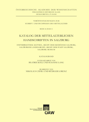 Reihe: Denkschriften der philosophisch-historischen KlasseIm Rahmen des Katalogs werden die kleineren mittelalterlichen Handschriftenbestände im Bundesland Salzburg entsprechend den Richtlinien der Abteilung Schrift- und Buchwesen des Instituts für Mittelalterforschung an der Österreichischen Akademie der Wissenschaften beschrieben. Von den im Katalog erschlossenen Handschriften des Kollegiatstifts Mattsee, des Archivs der Erzdiözese Salzburg, des Archivs der Stadt Salzburg, des Salzburger Lan-desarchivs und der Bibliothek des Salzburg Museums war bisher nur eine geringe Anzahl in Form von Inventaren des Hill Monastic Manuscript Library-Projekts verfügbar, so dass die hier beschriebenen Handschriften und Fragmente nun erstmals gemäß wissenschaftlichen Ansprüchen einer breiten Fachöffentlichkeit zugänglich gemacht werden. Zwar stammen die katalogisierten Handschriften überwiegend aus dem Spätmittelalter und dem bayerisch-österreichischen Raum, beinhalten zumeist Theologisches (Exegetisches, liturgisches Schrifttum, Predigtsammlungen), Juristisches (Kommentarliteratur oder Synodalakten) und Medizinisches (darunter die Handschriften des Salzburger Apothekers Zacharias Stewitz). Doch finden sich darunter ebenso Fragmente des neunten wie auch Handschriften des 16. Jahrhunderts; Oberitalien und Frankreich bilden zudem einen weiteren Schwerpunkt der Provenienzen. Die Kodizes sind hierbei nicht alleine der lateinischen Schriftlichkeit zuzu-rechnen, breit gestreut sind auch die Themenfelder, die in der Volkssprache behandelt wur-den: sei es nun Normatives (Stadt- und Bergwerksordnungen), Historiographisches (Jordan von Martinsbuech), Philosophisch-Theologisches (Paracelsus, Agrippa von Nettersheim) oder seien es medizinische oder alchemistische Rezeptbücher bis hin zu Wappen- und Büchsenmeisterbüchern.