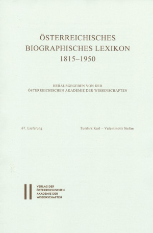 Serie: Österreichisches Biographisches Lexikon 1815-1950Das Österreichische Biographische Lexikon erfasst bedeutende Persönlichkeiten, die auf dem jeweiligen österreichischen Staatsgebiet geboren wurden, gelebt oder gewirkt haben und zwischen 1815 und 1950 verstorben sind. Bestimmend für die Aufnahme ist eine besondere Leistung bzw. Relevanz in Wissenschaft, Politik, bildender oder darstellender Kunst, Literatur, Sport, Technik, Wirtschaft, in der Verwaltung oder im Unterrichtswesen. Das Lexikon wendet sein Augenmerk dabei nicht nur den ganz Großen, sondern auch jenen Persönlichkeiten zu, die man sonst in Lexika vergeblich sucht.