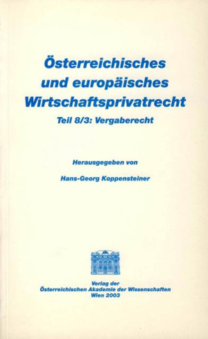 An examination of the effects of European Procurement Law has been published as a last volume in a series that discusses the importance of EC Law for Austrian Commercial Civil Law in the broadest yet most comprehensive manner possible. Implementing the European requirements but also continuing Austrian traditions, the Austrian legislators have created national