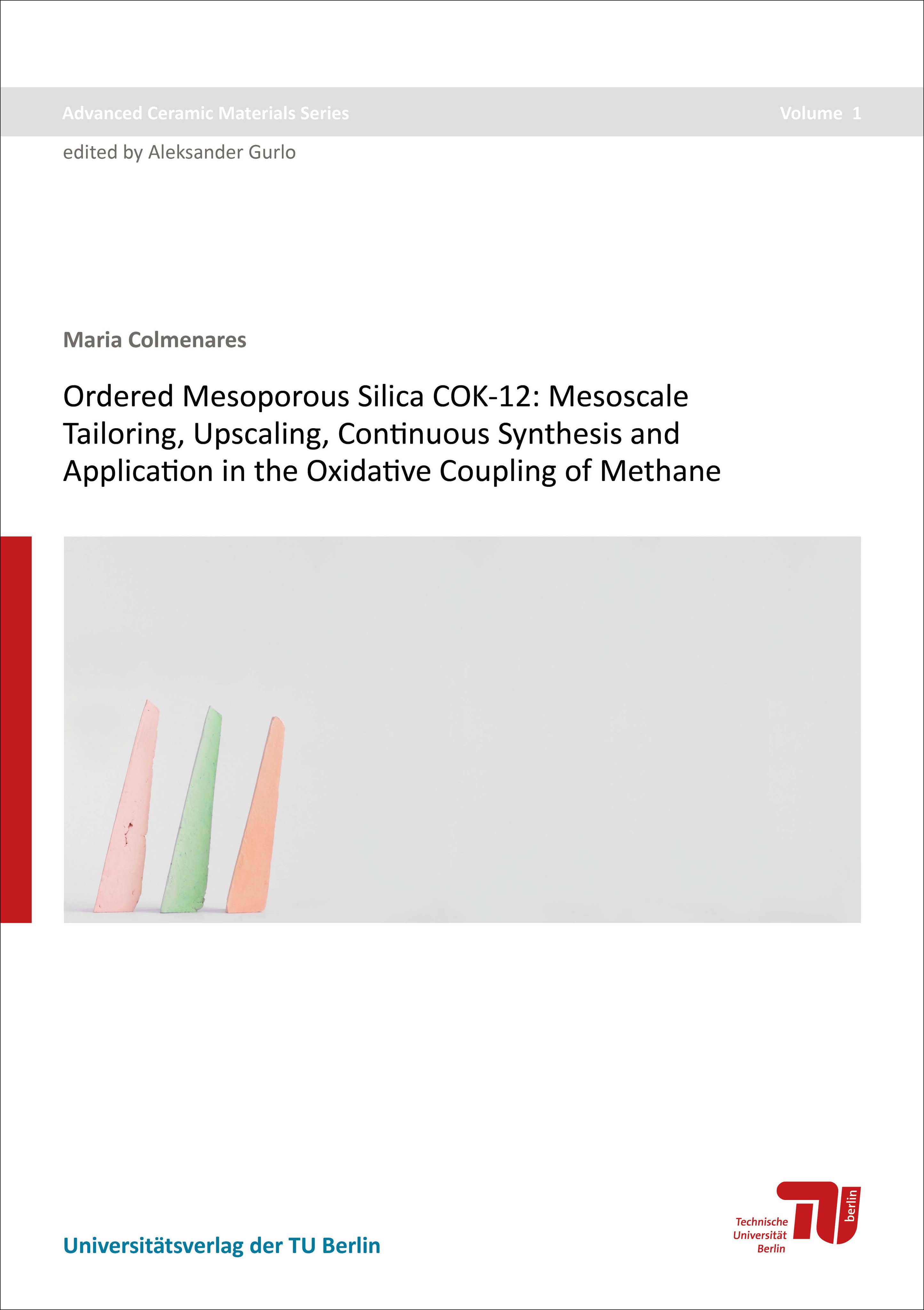 Reihe: Advanced Ceramic MaterialsOrdered Mesoporous Silica (OMS) gehört zu der Familie der Silica-Nanomaterialien mit periodisch angeordneten Mesoporen im Größenbereich zwischen 2 und 50 nm. Diese werden zunehmend in unterschiedlichen Forschungsfeldern wie Medikamentenfreisetzung, Adsorption, Separation und Katalyse eingesetzt. COK-12 ist ein OMS, das über eine Soft-Templating-Methode unter Nutzung des Blockcopolymers P123 als strukturbestimmenden Zusatz erzeugt wird. Die Synthese erfolgt bei Raumtemperatur unter milden Reaktionsbedingungen. Im Vergleich zu den am weitesten bekannten OMS-Materialien ist die Synthese von COK-12 zeiteffizient, günstig und umweltfreundlich. Dabei wird ein OMS-Material analog zu dem bereits etablierten SBA-15 erzeugt. Die vorliegende Dissertation umfasst die Synthese eines als COK-12 bekannten OMS-Materials, dem Scale-Up der Synthese sowie die Anpassung und Modifizierung der ursprünglich hexagonal-angeordneten Mesoporen bezüglich Porengrößen und Porenform. Das diskontinuierliche Scale-Up im Batchprozess führt zu nahezu identischen Materialeigenschaften im Vergleich zu dem ursprünglichen COK-12. Ein Scale-Up der COK-12-Synthese wurde zusätzlich im kontinuierlichen Prozess erprobt. Dessen Installation und Operation wurde mit dem Ziel durchgeführt, um die Möglichkeit einer Produktion von großen Mengen an COK-12 mit einheitlichen Materialeigenschaften zu validieren. Durch eine Variation der Alterungszeit als auch der Fließrate der Lösungen konnte COK-12 im kontinuierlichen Prozess mit nahezu identischen Eigenschaften wie das ursprüngliche COK-12 erzeugt werden. COK-12 wurde erfolgreich in verschiedenen Formen (Pulver, Pressgranulate und Monolithe) als Trägermaterial für Na2WO4-Mn/SiO2-Katalysatoren für die Oxidative Kopplung von Methan eingesetzt. Die resultierenden Aktivitäten ist sind vergleichbar mit denen des auf SBA-15-geträgerten Katalysators Der Vorteil der Nutzung von COK-12 im Vergleich zu anderen OMS-Materialien liegt in der vergleichsweise simplen COK-12-Synthese, weshalb es ein interessanter Kandidat für eine mögliche industrielle Produktion des Na2WO4-Mn/SiO2-Katalysators ist, wenn geeignete Pelletierungs- und Herstellungsmethoden angewendet werden.