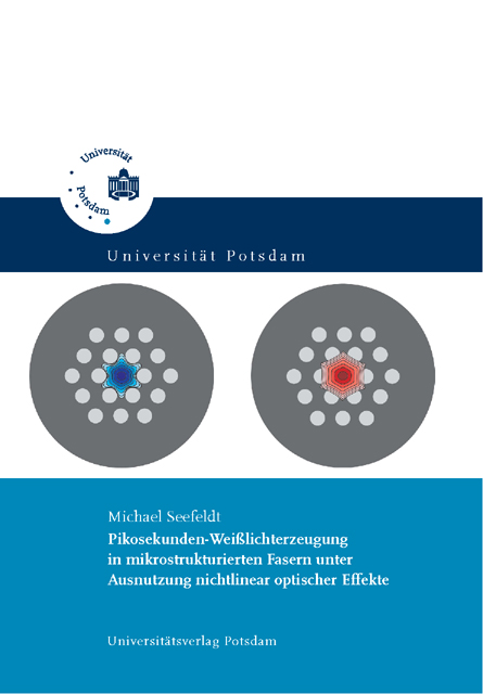 Im Rahmen der vorliegenden Arbeit ist es erstmals gelungen, mit einem ps-Pumplaser (10 ps) Weißlicht mit einer spektralen Breite von mehr als einer optischen Oktave in einer mikrostrukturierten Faser (MSF) bei einer Pumpwellenlänge von 1064 nm zu generieren. Es ließ sich, abgesehen von nichtkonvertierten Resten der Pumpstrahlung, ein unstrukturiertes und zeitlich stabiles Weißlichtspektrum von 700 nm bis 1650 nm generieren. Die maximale Ausgangsleistung dieser Weißlichtstrahlung betrug 3,1 W. Es konnten sehr gute Einkoppeleffizienzen von maximal 62 %% erzielt werden. Die an der Weißlichterzeugung beteiligten dispersiven und nichtlinear optischen Effekte, wie z.B. Selbstphasenmodulation, Vierwellenmischung, Modulationsinstabilitäten oder Solitoneneffekte, werden detailliert theoretisch untersucht und erläutert. Die Arbeit beinhaltet ebenfalls eine umfangreiche Beschreibung der Wirkungsweise und Eigenschaften von mikrostrukturierten Fasern mit einem festen Faserkern. Aufgrund der großen Variationsvielfalt des mikrostrukturierten Fasermantels und der damit verbundenen Wellenleitereigenschaften ergeben sich, insbesondere für die Anwendung in der nichtlinearen Optik, eine Reihe von interessanten Eigenschaften. Es wurden insgesamt vier verschiedene mikrostrukturierte Fasern experimentell untersucht. Für die Interpretation der experimentellen Ergebnisse ist die Pulsausbreitung der ps-Pumppulse in einer dispersiven, nichtlinear optischen Faser anhand der verallgemeinerten nichtlinearen Schrödinger-Gleichung berechnet worden. Durch einen Vergleich der Berechnungen mit den Messdaten ließen sich verstärkte Modulationsinstabilitäten und verschiedene Solitoneneffekte als hauptsächlich für die Weißlichterzeugung bei ps-Anregungspulsen verantwortlich identifizieren. Auf der Basis der durchgeführten Untersuchungen wurde in Kooperation mit der Fa. Jenoptik Laser, Optik, Systeme GmbH eine kompakte und leistungsstarke Weißlichtquelle entwickelt. Diese wurde erfolgreich in einer Kohärenztomographiemessung (Optical Coherence Tomography – OCT) getestet: Es konnte in ex vivo-Untersuchungen gezeigt werden, dass sich mit dieser ps-Weißlichtquelle eine hohe Eindringtiefe von ca. 400 µm in die Netzhaut eines Affen erreichen lässt.
