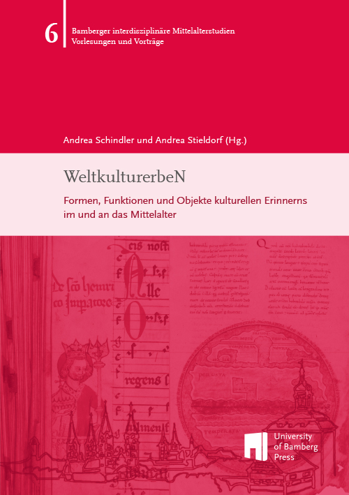 Reihe: Bamberger interdisziplinäre Mittelalterstudien - Vorlesungen & Vorträge20 Jahre Weltkulturerbe Bamberg – das war 2013 für das Zentrum für Mittelalterstudien der Universität Bamberg Anlass, nach der Bedeutung der Programme ‚Weltkulturerbe‘ und ‚Weltdokumentenerbe‘ und generell nach Ursachen und Wirksamkeiten von ‚kulturellem Erben‘, von der Tradierung und Wertschätzung lange vergangener, vor allem mittelalterlicher, oder auch rezenter Kultur(en) bzw. kultureller Artefakte und Praktiken zu fragen. In Beiträgen unter anderem über Kaiser Friedrich I. Barbarossa, mittelalterliche und frühneuzeitliche Karten, spätmittelalterliche Handschriften der Bamberger Staatsbibliothek, das Lübecker Gründungsviertel oder eine persische Stiftungsurkunde wird untersucht, welche Objekte und Formen der Erinnerung für unser kulturelles Gedächtnis von besonderer Bedeutung sind.