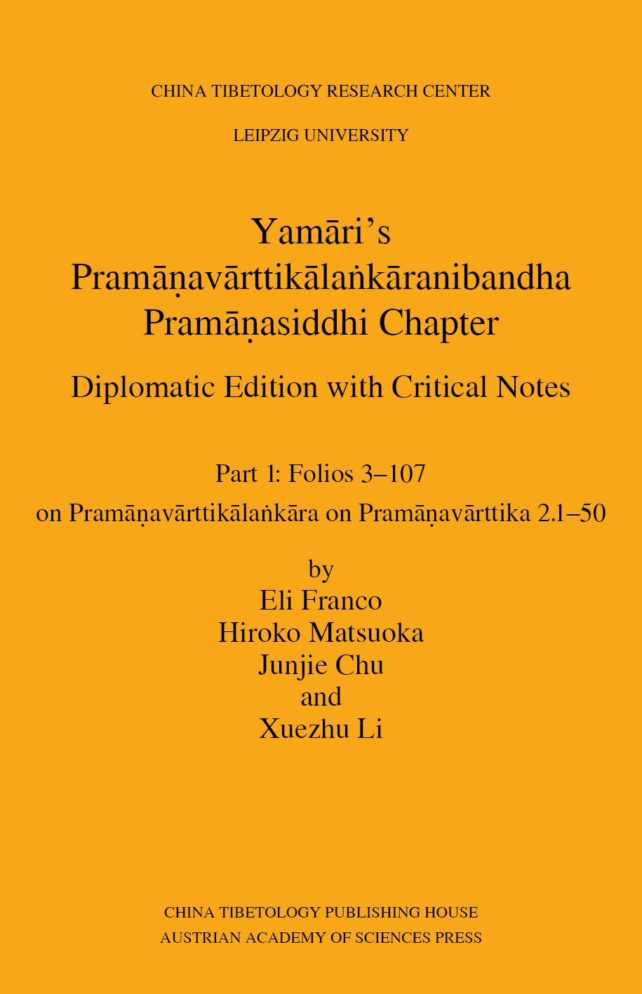 Pramāṇasiddhi Chapter: Dimplomatic Edition with Critical Notes. Part 1: Folios 3‒107 on Pramāṇavārttikālaṅkāra on Pramāṇavārttika 2.1–50